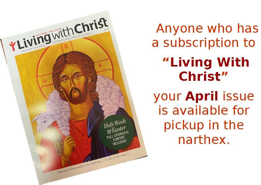 - The Magnificat Lenten Companion and The Word Among Us are available in the narthex. Please feel free to take what you need.